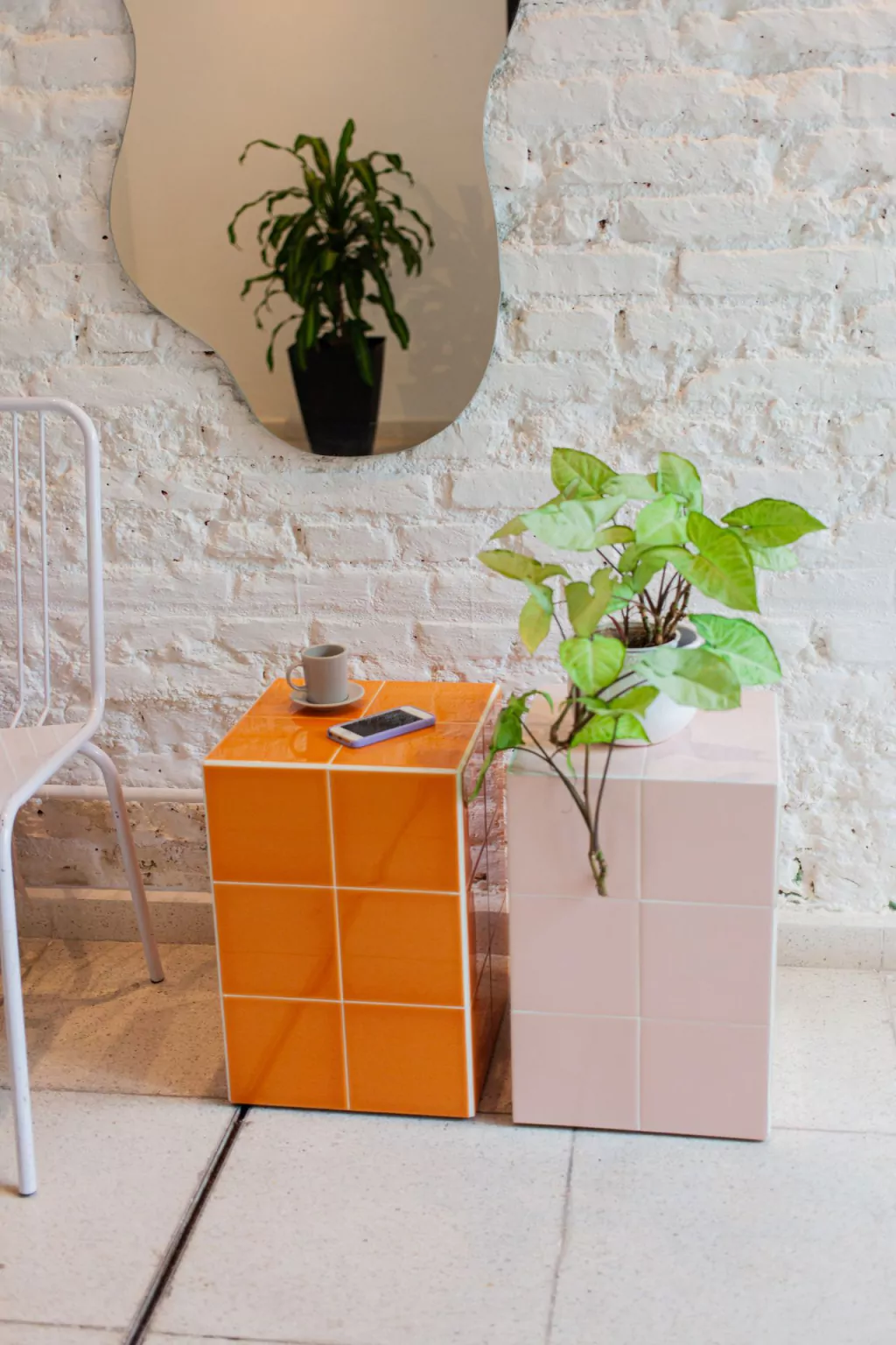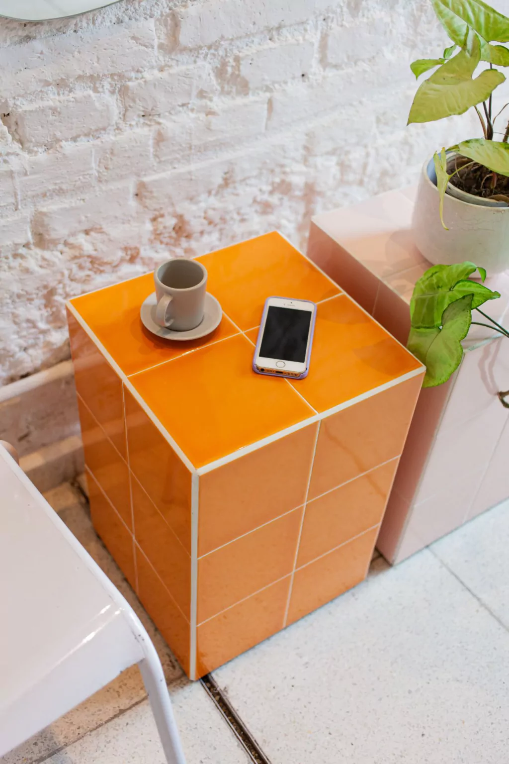 Objeto de arte y mueble funcional en partes iguales; su estética es parte del resurgimiento de la decoración de los años 80's y 90's. Ideal para uso doméstico o para espacios comerciales, agrega un toque de estilo a cualquier ambiente.