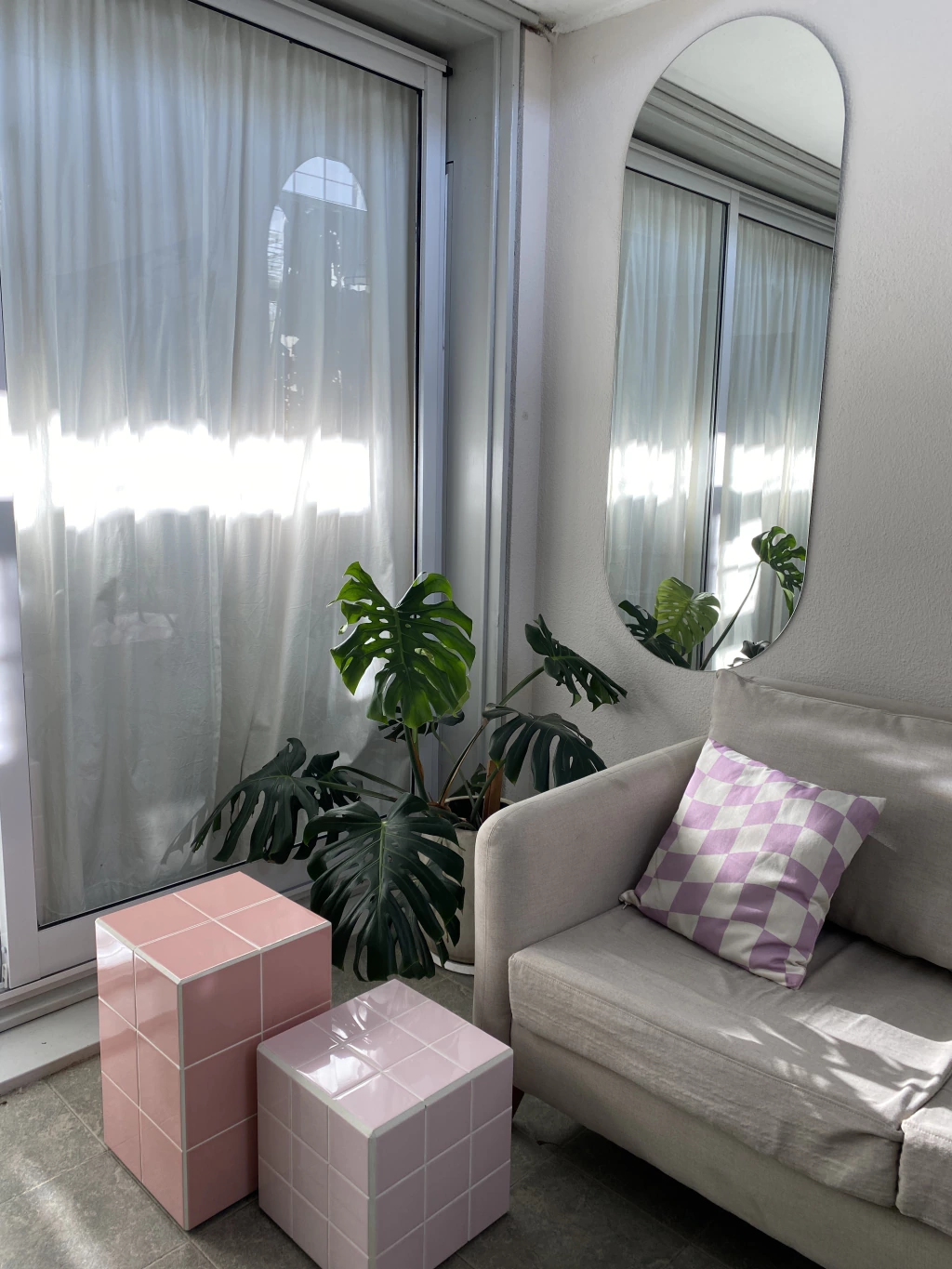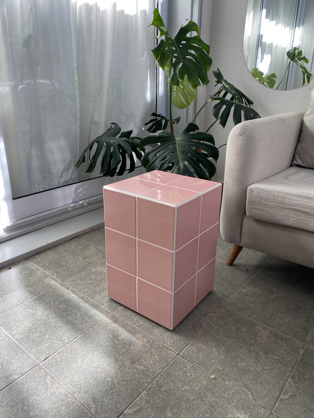 Objeto de arte y mueble funcional en partes iguales; su estética es parte del resurgimiento de la decoración de los años 80's y 90's. Ideal para uso doméstico o para espacios comerciales, agrega un toque de estilo a cualquier ambiente.