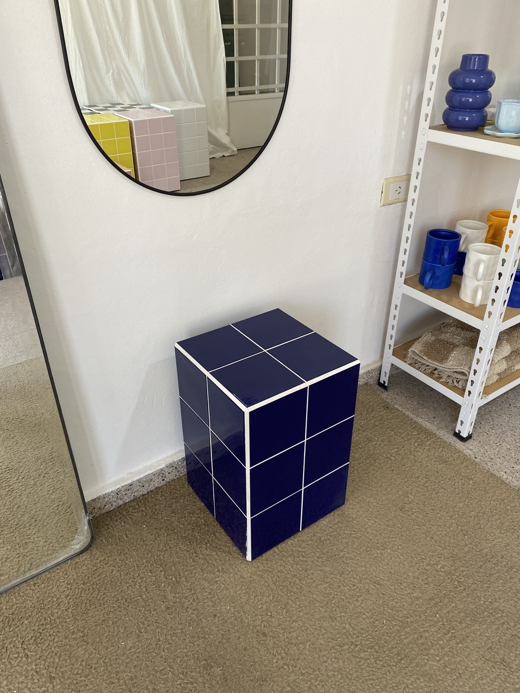 Objeto de arte y mueble funcional en partes iguales; su estética es parte del resurgimiento de la decoración de los años 80's y 90's. Ideal para uso doméstico o para espacios comerciales, agrega un toque de estilo a cualquier ambiente.