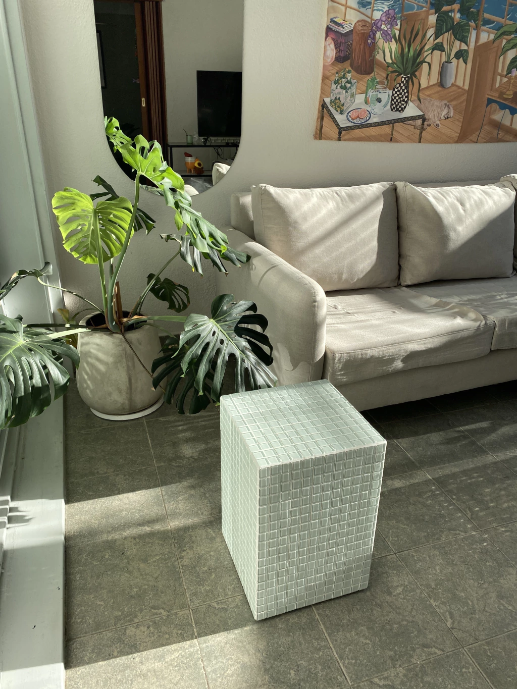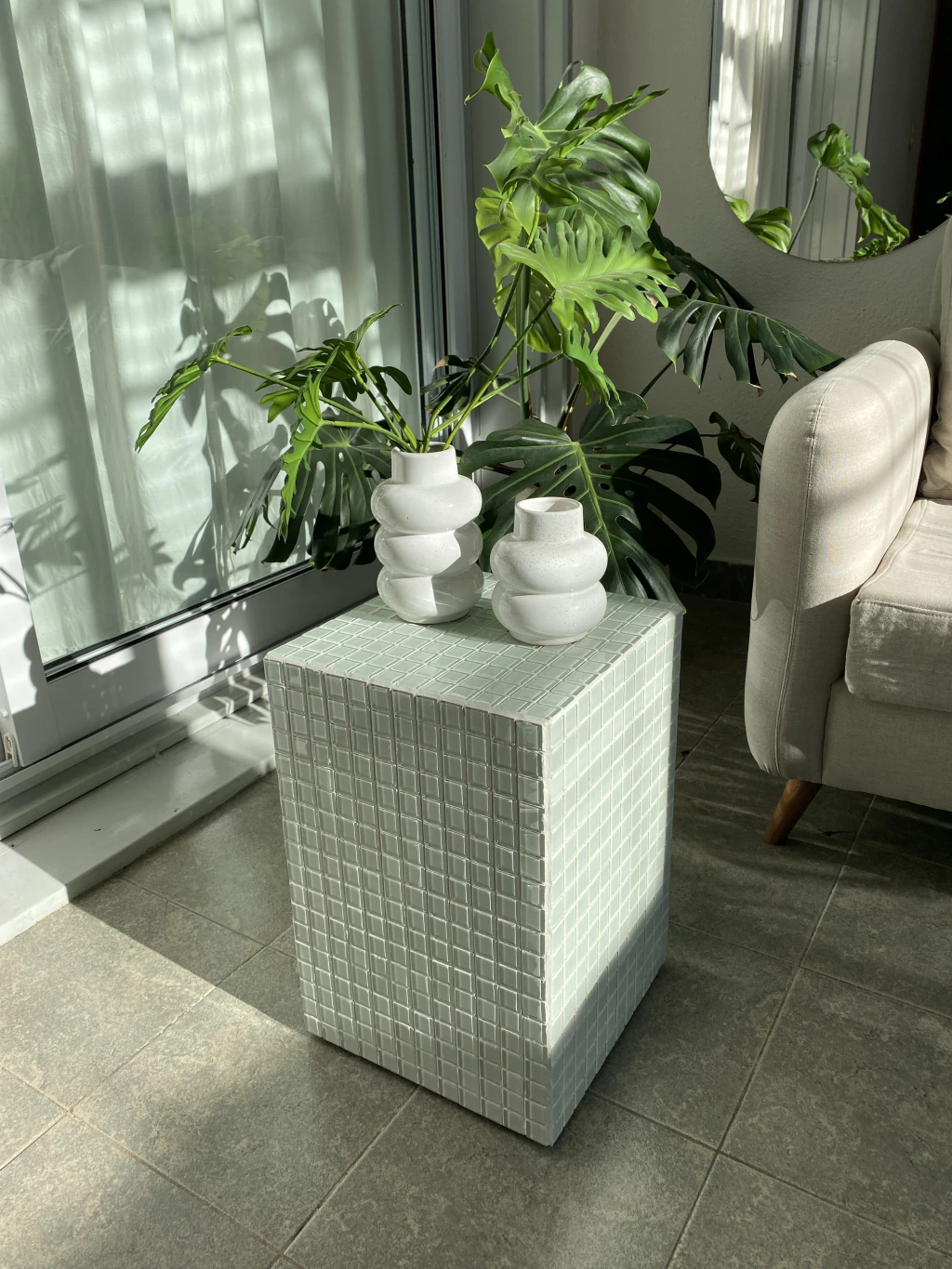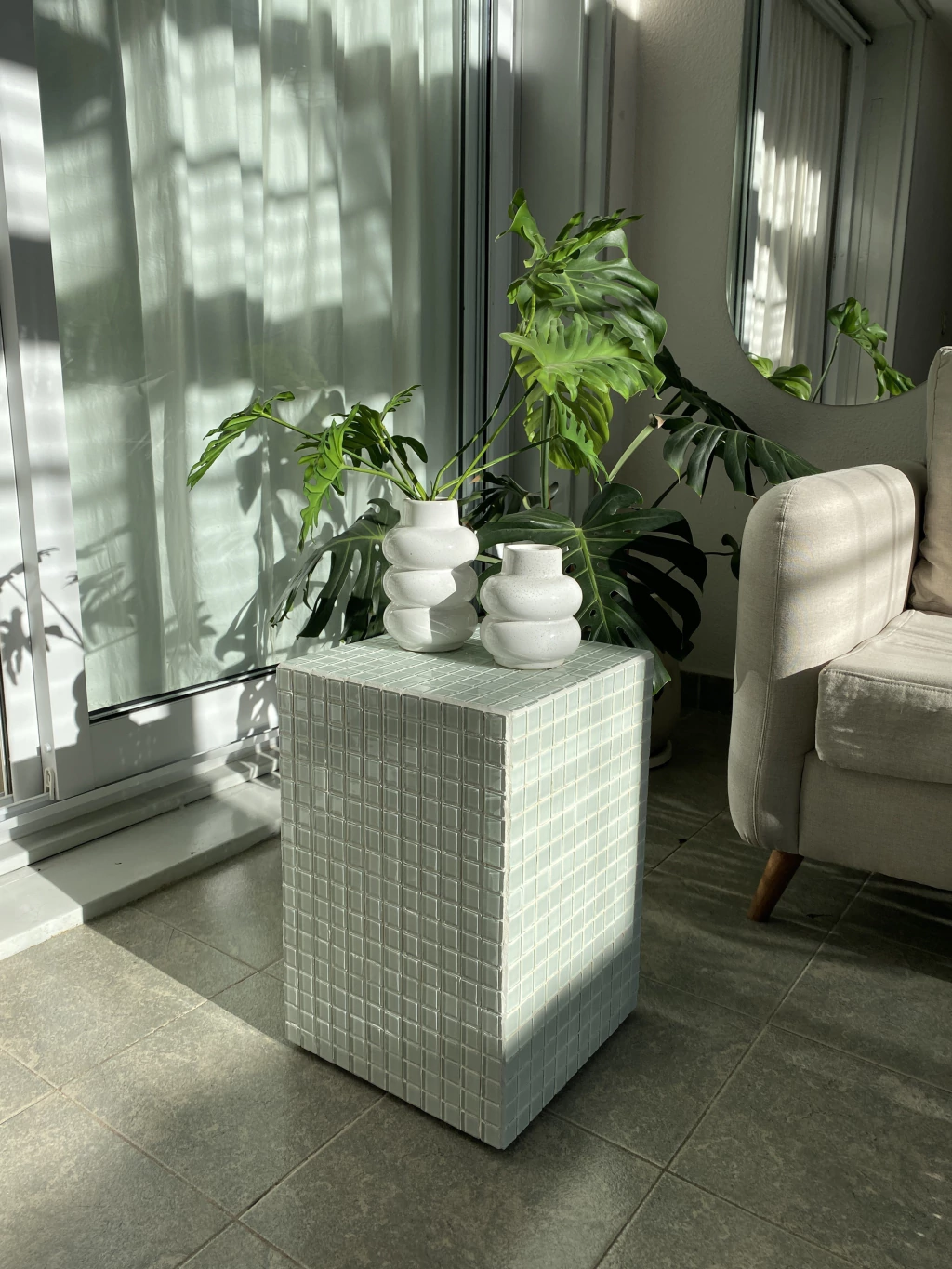 Objeto de arte y mueble funcional en partes iguales; su estética es parte del resurgimiento de la decoración de los años 80's y 90's. Ideal para uso doméstico o para espacios comerciales, agrega un toque de estilo a cualquier ambiente.